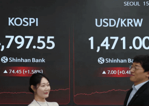 10일 서울 중구 하나은행 딜링룸 현황판에 코스피 지수 등이 표시되고 있다. 연합뉴스